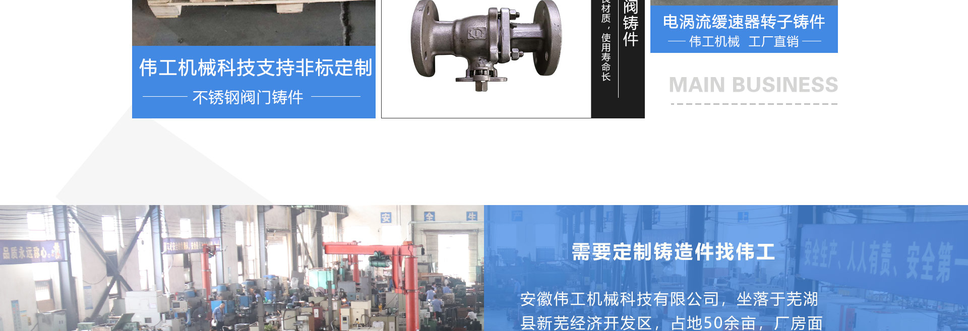 安徽偉工機械科技有限公司,坐落于安徽蕪湖新蕪經濟開發(fā)區,是一家専業(yè)從事鑄造產品設計、研發(fā)、生產、銷售于一體的企業(yè),公司為客戶的產品提供多樣的技術支持與設計,公司主要鑄造技術有潮模砂鑄造、硅溶膠精鑄工藝。主要產品有:不銹鋼閥門配件、泵閥配件、汽車配件、工業(yè)管道配件、工程機械配件、汽車配件等。材質為:低合金鋼、304、316、316L、鉻鉬鋼、哈氏合金、碳鋼、雙相鋼等。公司已先后通過ISO9001和TS16949等多種體系審核,以完備的管理手段和齊全的檢測設備滿足客戶需求,進的設備,専業(yè)的技術,嚴謹的管理,穩(wěn)定的質量。服務客戶,鑄造未來,偉工誠摯的歡迎新老客戶共同商洽合作